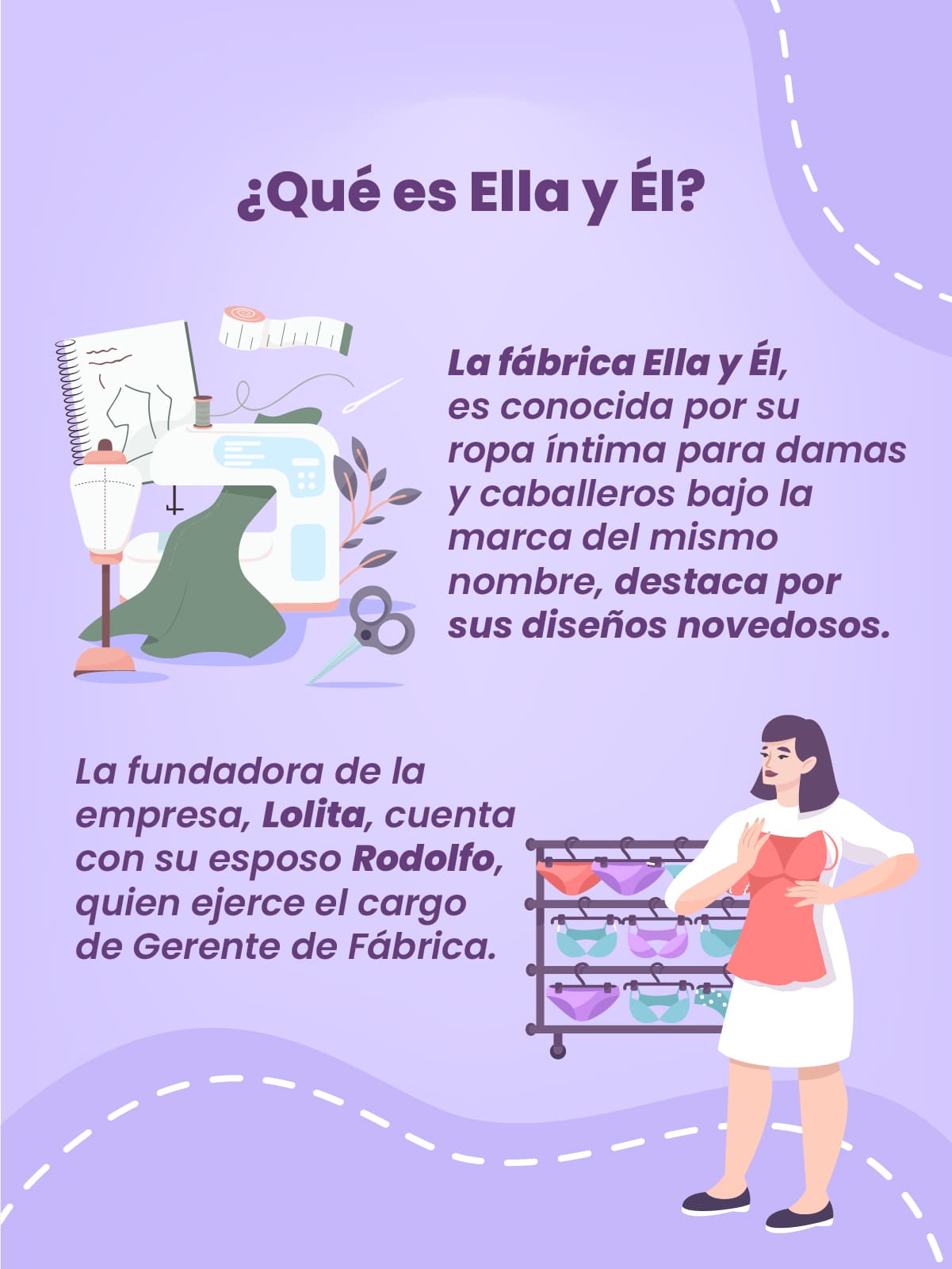 Como ves, es una fábrica de ropa íntima, para damas y caballeros, emprendida por los esposos Aguilar, Lolita y Rodolfo.